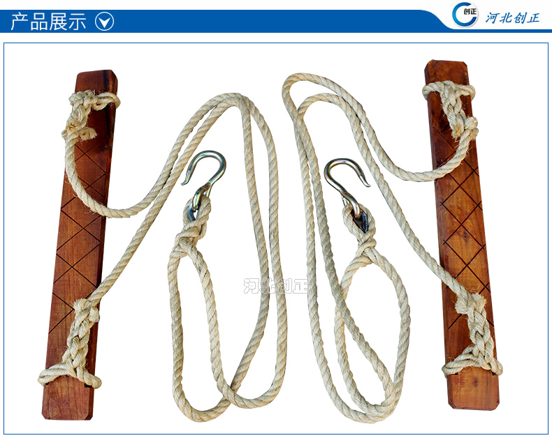 登高板又稱踏板,升降板。用來攀登電桿。登高板由踩板、繩索、鐵鉤組成。踩板用堅硬的木材制成,繩索為16mm多股白棕繩或尼龍繩,繩兩端系結在踏板兩頭的扎結槽內(nèi),繩頂部系結鐵掛鉤,繩的長度應與使用者的身材相適應。