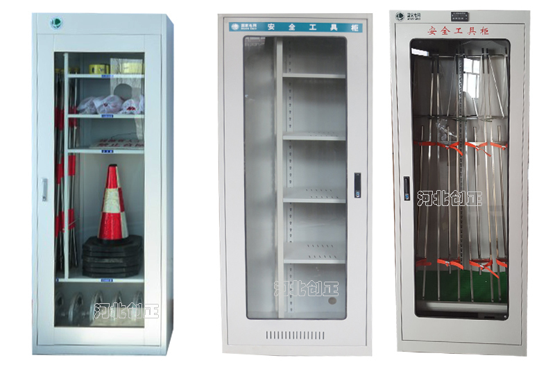 1、柜體是冷軋鋼板卷壓成型,厚度有1.0mm,1.2mm,1.5mm供選擇。柜體表面采用靜電防腐噴塑工藝,顏色為駝灰色,柜門裝有通體透明鋼化玻璃,透過玻璃可以看到分類有序的工器具。