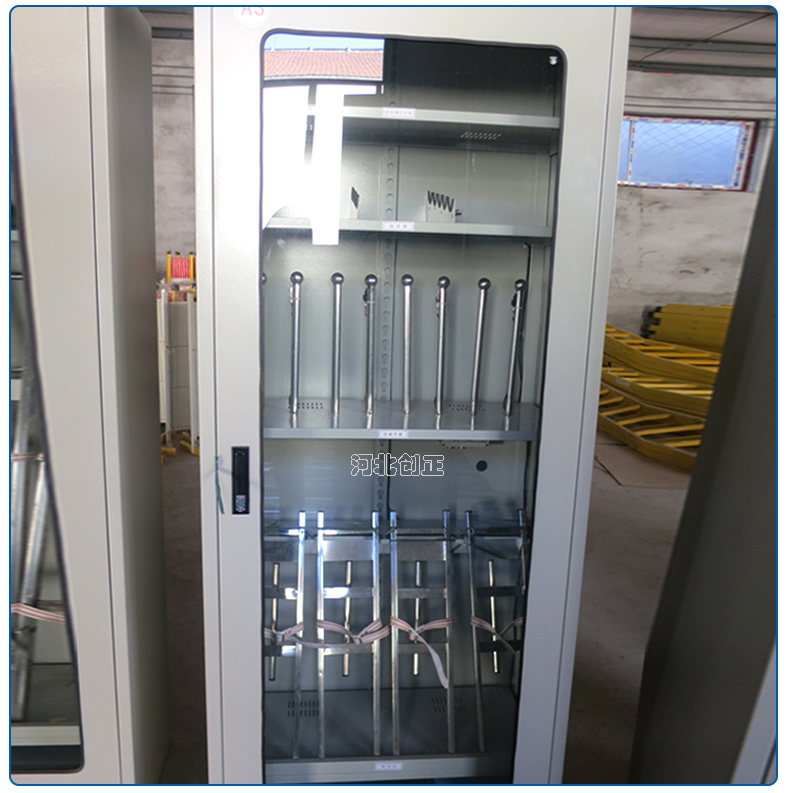 2、智能型安全工具柜裝有溫濕度顯示表和控制操作面板,顯示溫濕度和設備運行狀態(tài)。柜底可選擇安裝萬向輪和定位螺桿;柜頂可選擇安裝吊杯,方便運輸。應用于不同溫濕度地區(qū)的不同電壓等級的變電站、集控站、線路工區(qū)以及電力公司等單位。