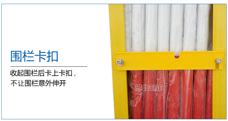 3、產(chǎn)品特點:紅白相間有警示作用;配有底輪,搬運方便。