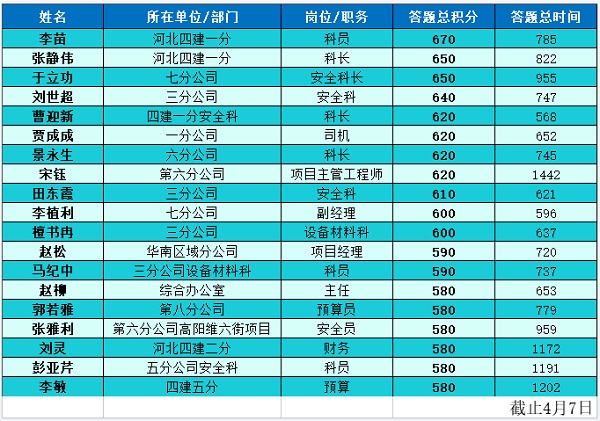 “等你來戰(zhàn)!公司‘安全培訓(xùn)教育月’微信答題活動(dòng)開始啦!”隨著4月1日首次答題的推出,公司為期一個(gè)月的“強(qiáng)化安全教育,共建安康環(huán)境”主題安全生產(chǎn)知識(shí)微信答題活動(dòng)拉開了帷幕。